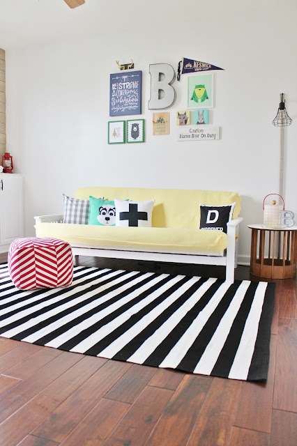 When it came time for the playroom makeover, some of you may recall my original inspiration for the space included a fun and bright yellow couch.