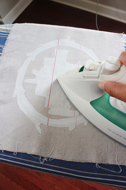 After I saved my design from Pic Monkey I opened it up and prepared it for printing on a transfer sheet (I've been happy with this brand here ) I just simply followed the instructions that came in the packet; print (make sure to "flip" or "mirror your image"!), trim, and iron on.
